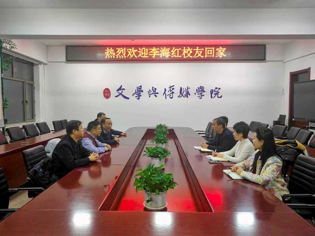 12月22日下午,學(xué)校特邀1979級中文專業(yè)校友李海紅重返母校座談交流。黨委書記劉峰、院長李奇楠、黨委副書記姜軍出席會議。