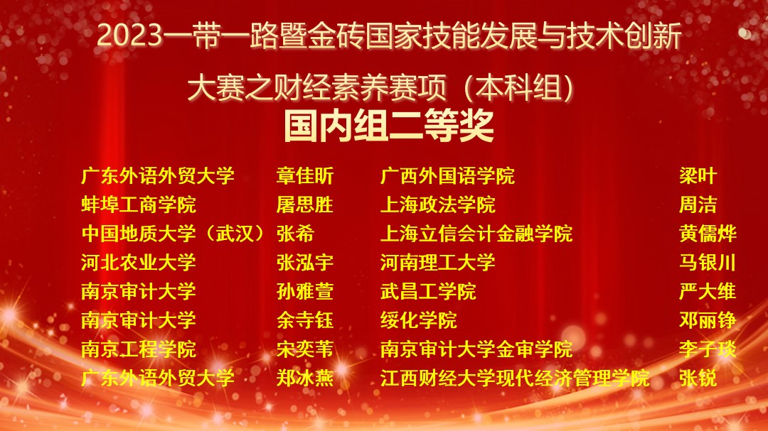 我校在2023一帶一路暨金磚國家技能發(fā)展與技術(shù)創(chuàng)新大賽財經(jīng)素養(yǎng)賽項決賽中榮獲一等獎