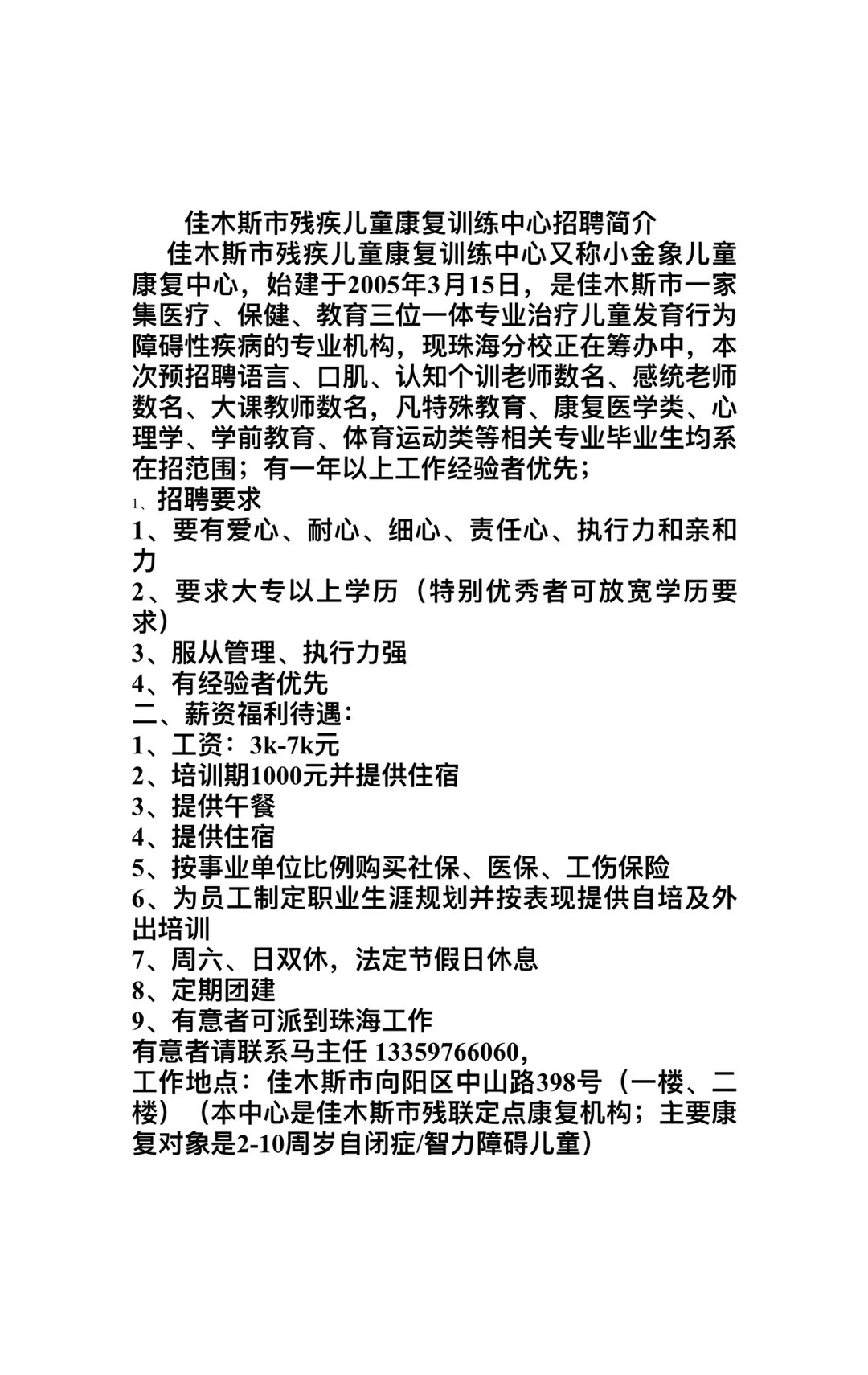 佳木斯市殘疾兒童康復(fù)訓(xùn)練中心招聘信息